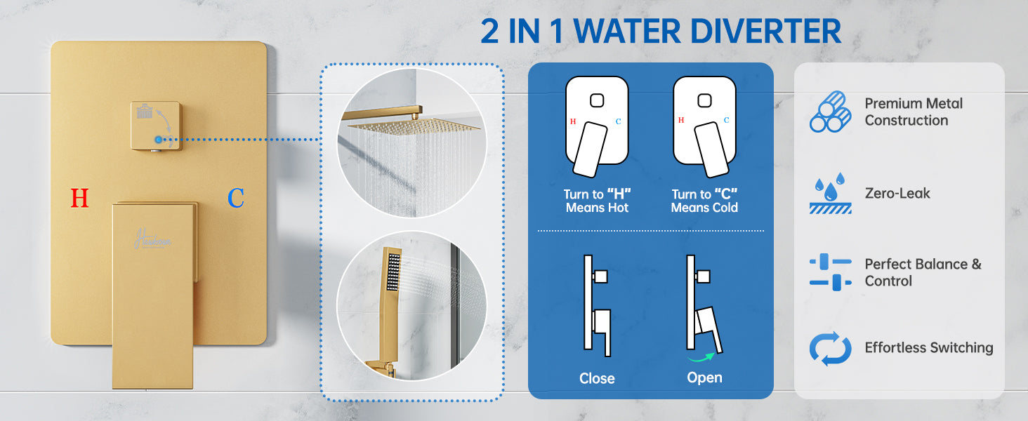 - The pressure balanced valve core is built with two internal check valves that continuously monitor and balance water pressure, while precisely handles sudden fluctuations in hot and cold water temperatures, eliminating the risk of scalding at the source. Compatible with standard 1/2-inch US pipe connections, it maintains a stable water flow rate of 1.78 Gallons Per Minute (6.7L/min), balancing energy efficiency and optimal user experience.