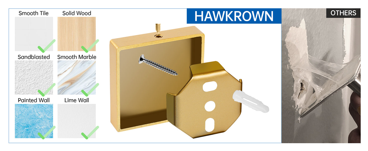 - The bathroom hardware set is all wall-mounted with hidden screws to maximize the load-bearing range.