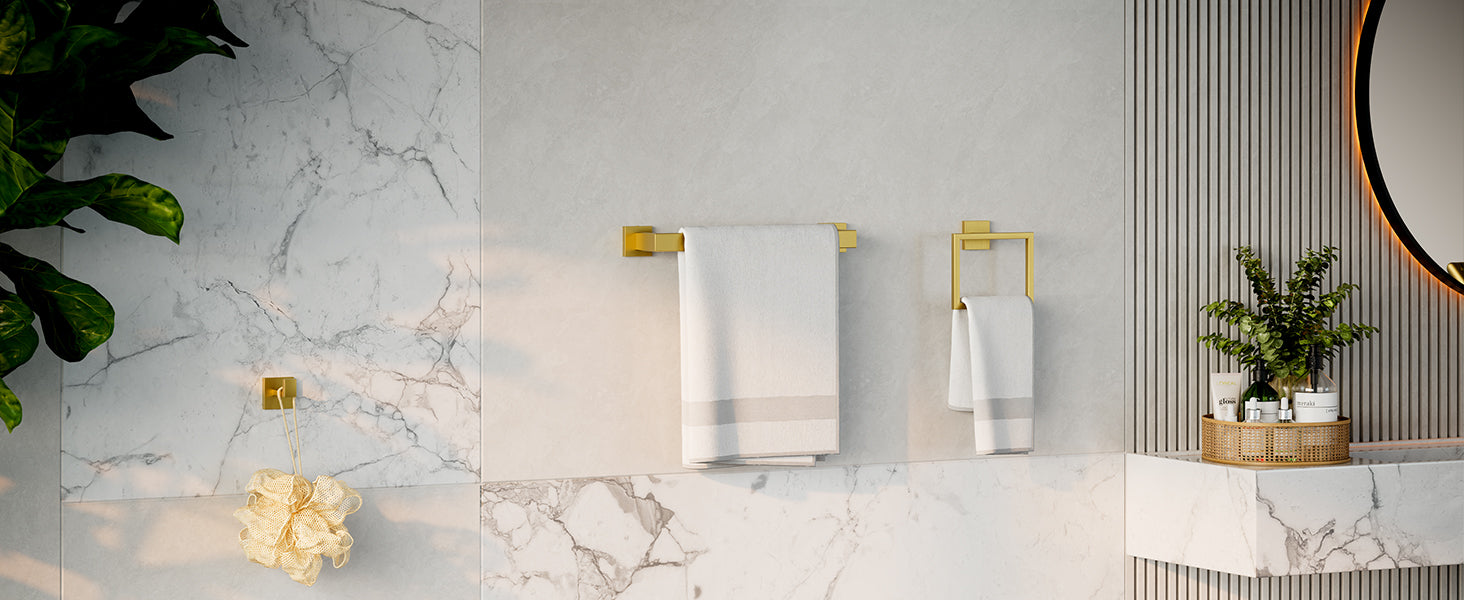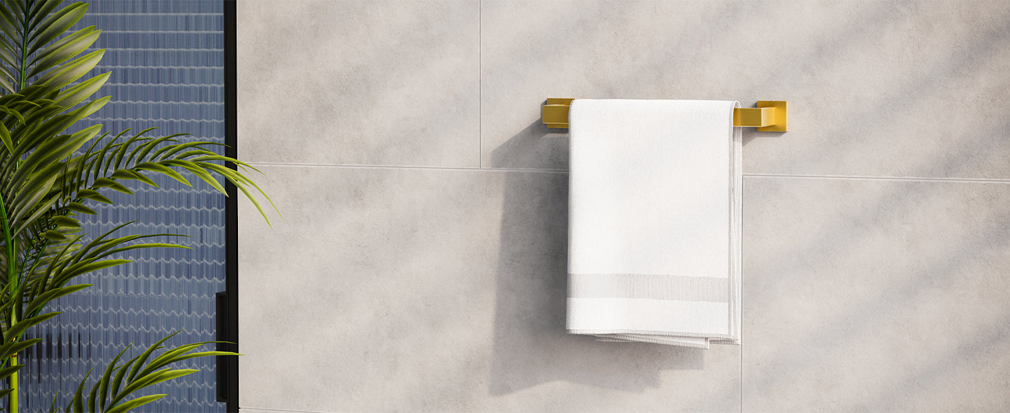 - Gold towel bar set is designed with clean lines and brushed gold finish. It can be matched with any home decor and style. It is the perfect accessory for your bathroom.