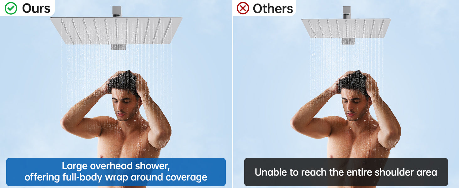 - Featuring cutting edge air injection technology, this rainfall shower head fully blends water with air to deliver double the water pressure, recreating the comfortable feel of natural rain. The shower head panel is reinforced with double the thickness, ensuring stability and durability even under high pressure conditions. While delivering powerful water pressure, it also saves 30%-50% on water usage perfect for households with low water pressure.