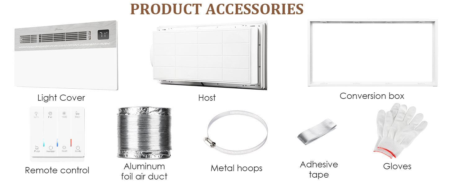 - Package includes 1*Bathroom Exhaust Fan (Casing and Exhaust Panel are separate), 1*Duct Adapter, 1*remote control, 1*User Manual. Bathroom Exhaust Fan with Light is perfect for places that need to remove humid air. Tips: 12-month warranty is provided. If you encounter any problems when using our bathroom fan, please contact us.