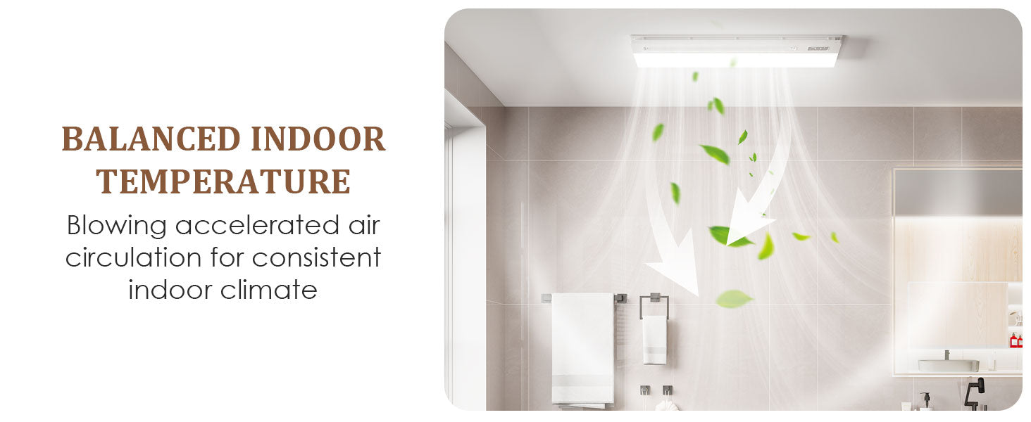 I'm so happy with this purchase. It’s more than just a bathroom exhaust fan with light – the heating and gentle blowing functions make a big difference, especially after hot showers. The acrylic panel looks premium, and the ambient lighting adds a cozy feel. The whole unit is quiet, efficient, and super easy to use with the remote. One of the best exhaust fan with light and heater options I’ve tried!