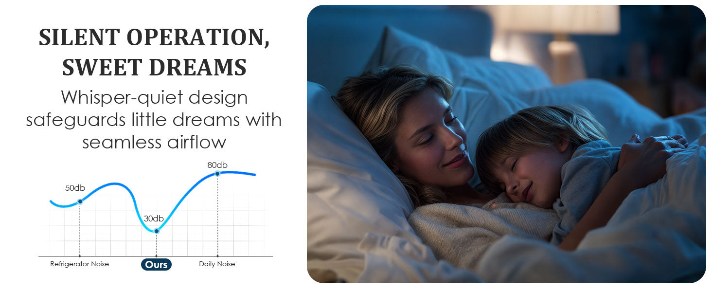 - Equipped with a full copper core motor and custom turbine housing to deliver higher air volume with whisper-quiet operation. 180 CFM of fast exhaust air can efficiently remove mist and keep your vision clear, and the operating noise level is at 1.0 Sone, which ensures a quiet surrounding environment when in use.