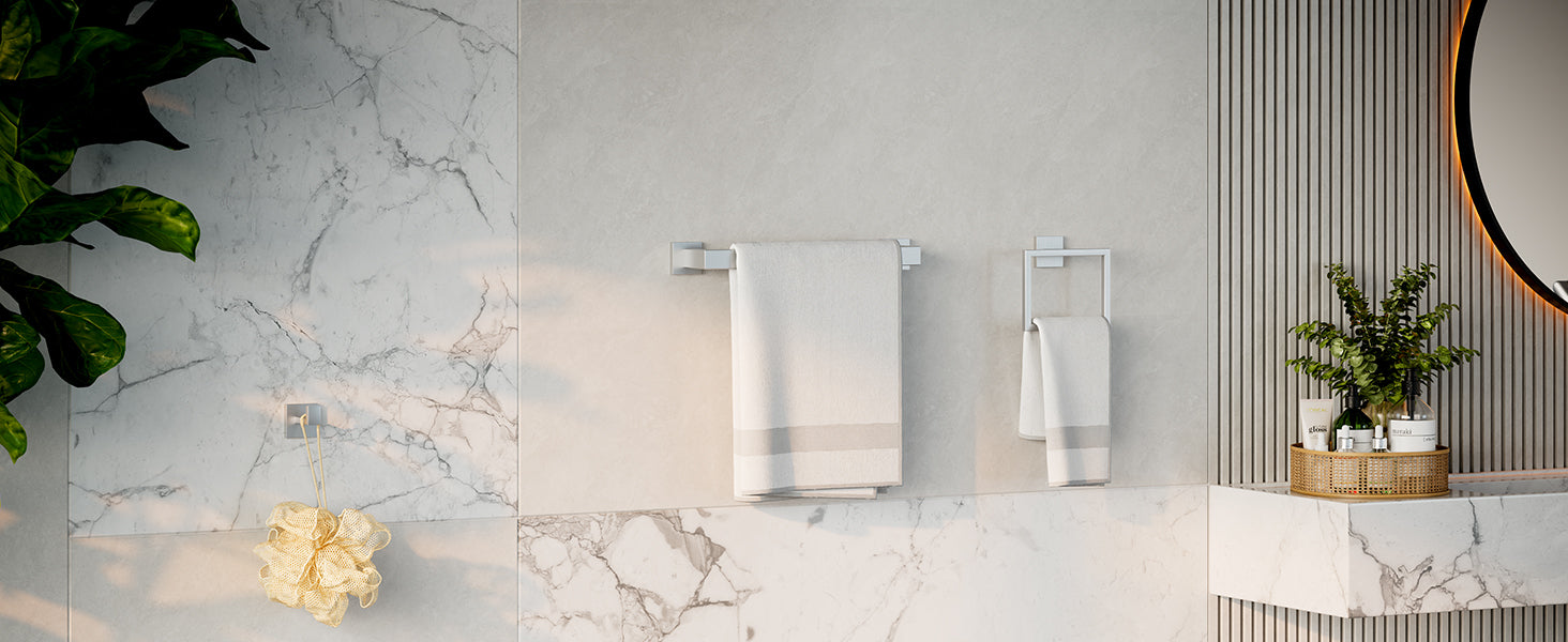 - Nickel towel bar set is designed with clean lines and brushed nickel finish. It can be matched with any home decor and style. It is the perfect accessory for your bathroom.