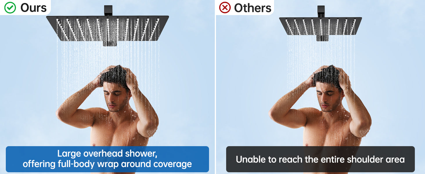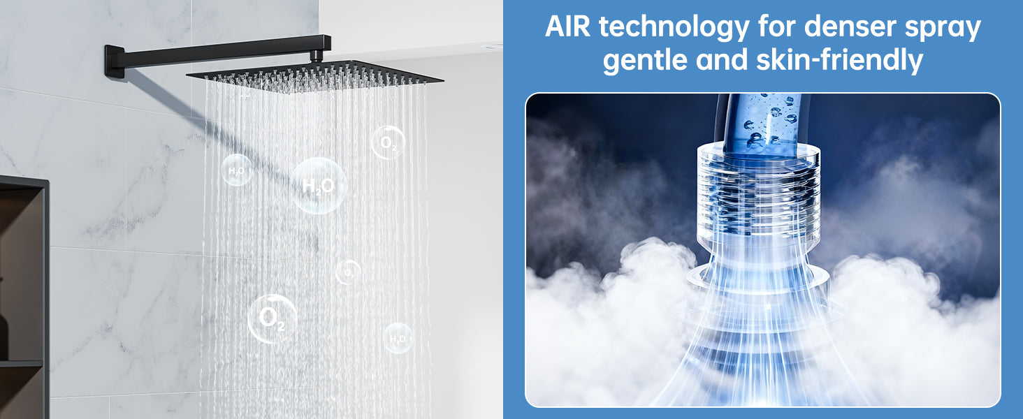 - Featuring cutting edge air injection technology, this rainfall shower head fully blends water with air to deliver double the water pressure, recreating the comfortable feel of natural rain. The shower head panel is reinforced with double the thickness, ensuring stability and durability even under high pressure conditions. While delivering powerful water pressure, it also saves 30%-50% on water usage perfect for households with low water pressure.