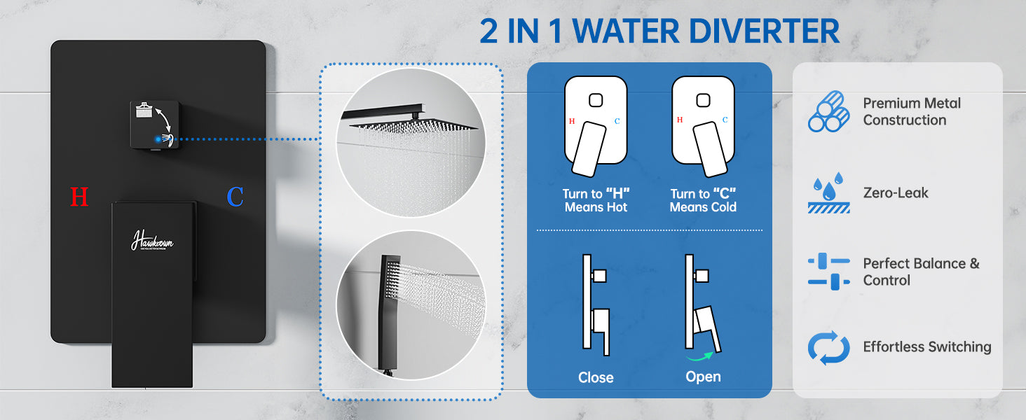 - The pressure balanced valve core is built with two internal check valves that continuously monitor and balance water pressure, while precisely handles sudden fluctuations in hot and cold water temperatures, eliminating the risk of scalding at the source. Compatible with standard 1/2-inch US pipe connections, it maintains a stable water flow rate of 1.78 Gallons Per Minute (6.7L/min), balancing energy efficiency and optimal user experience.