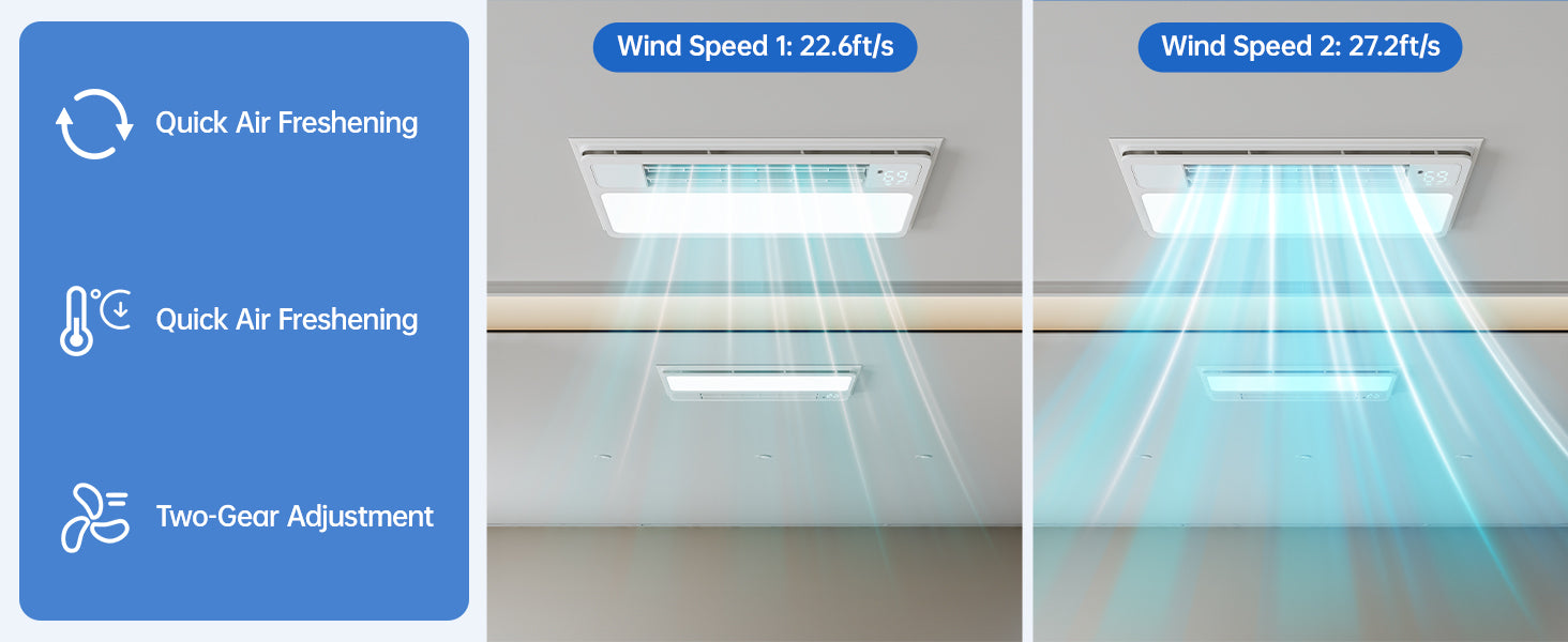 - Offers multiple wind speed settings. The square model can reach speeds of 16.4ft/s and 19.69ft/s, while the rectangular model goes up to 22.64ft/s and 27.16ft/s. Paired with a wide angle swinging blade design, it has a broad air delivery range, catering to various scenarios and individual comfort needs.