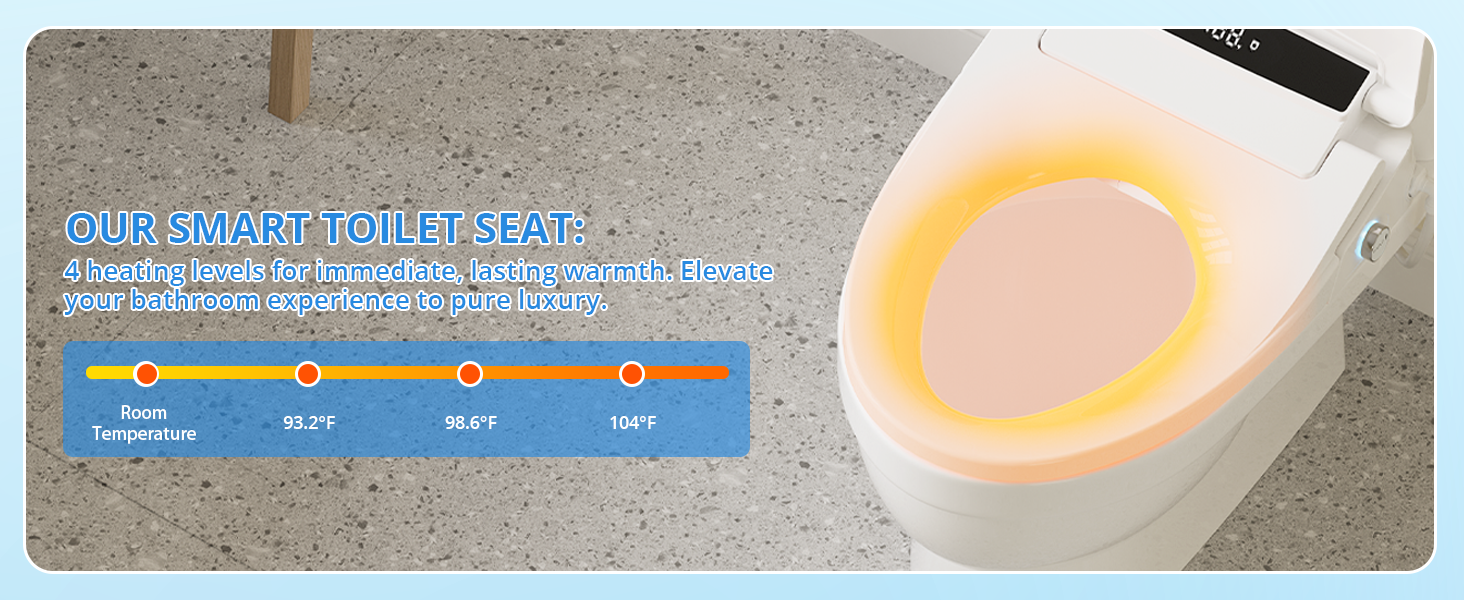 - Enjoy hot water in just 3 seconds. Adjust the water temperature across multiple settings to suit any season. The drying feature is even more impressive. With multiple warm air temperature options and an innovative air duct that delivers strong airflow, bidet toilet seat dries 60% faster, leaving you dry and comfortable in no time.
