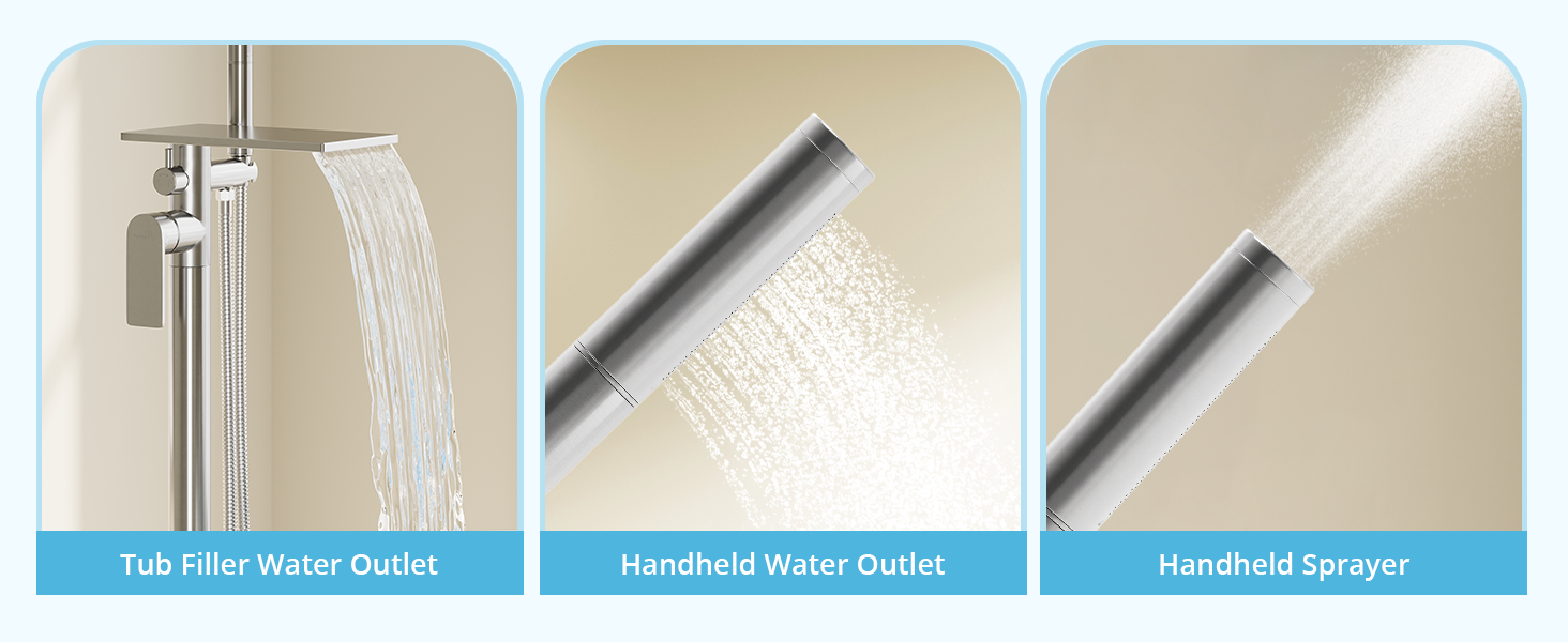 The design of the handheld showerhead is thoughtful. It's not only useful for bathing but also convenient for cleaning the bathtub. The overall quality is great, and the base is stable.
