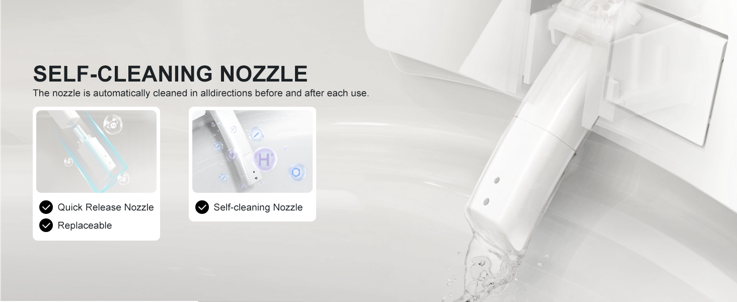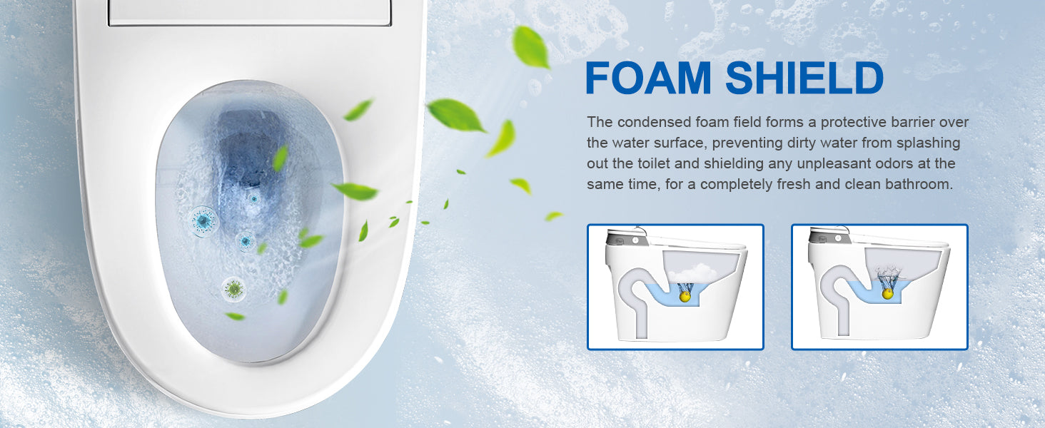 - This smart bidet toilet is specially designed with foam shielding and photocatalyst-free deodorization to prevent splashes and odors. Non-photocatalytic deodorization creates a catalytic reaction in the absence of light, eliminating harmful airborne pollutants and converting them into water and carbon dioxide, deodorizing and purifying the air at the source.