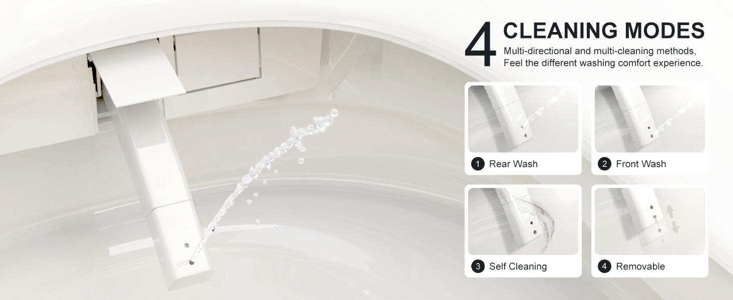 - This smart toilet cleaning water supply line has a section of UV irradiated piping that effectively physically purifies the water that flows through it, making the cleaning function more hygienic compared to other toilets. Cleaning modes are available for front wash, rear wash, moving wash and pulsating cleaning.