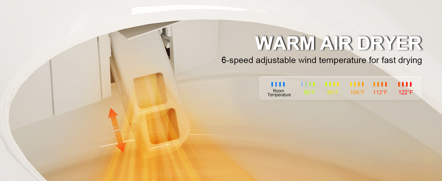 - This smart toilet with bidet built in adopts intelligent temperature sensing design, which will intelligently adjust the seat temperature and water temperature according to the external environment, and the 6-speed automatic temperature adjustment is more convenient to use. Note: This function is turned off by default, activate it according to the manual when you use it for the first time.
