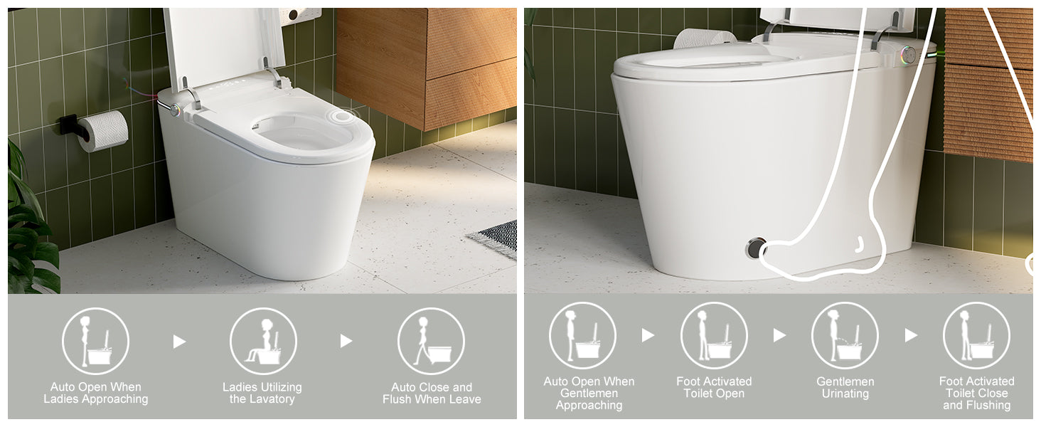 - Smart bidet toilet has a microwave sensor function that can auto open and close the lid and seat. The bidet toilet lid will auto open when you approach the toilet and automatically close when you leave.