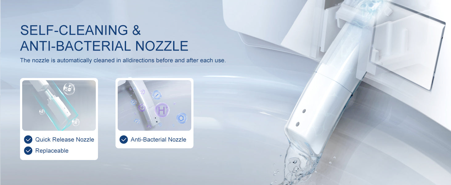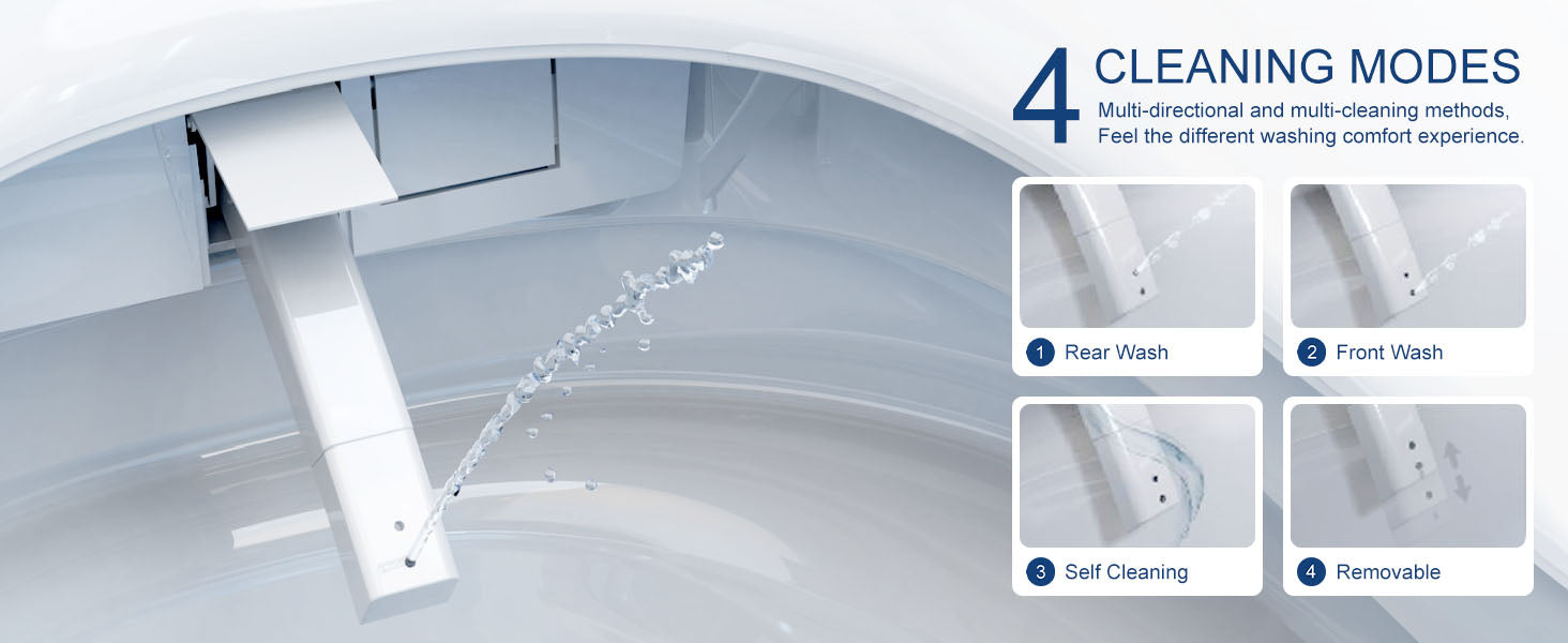 - The japanese toilet curved self-cleaning wand offers front wash, rear wash, moving wash and pulsating cleaning. The pressure and temperature of its instant hot water can be adjusted to meet the different needs of your family.